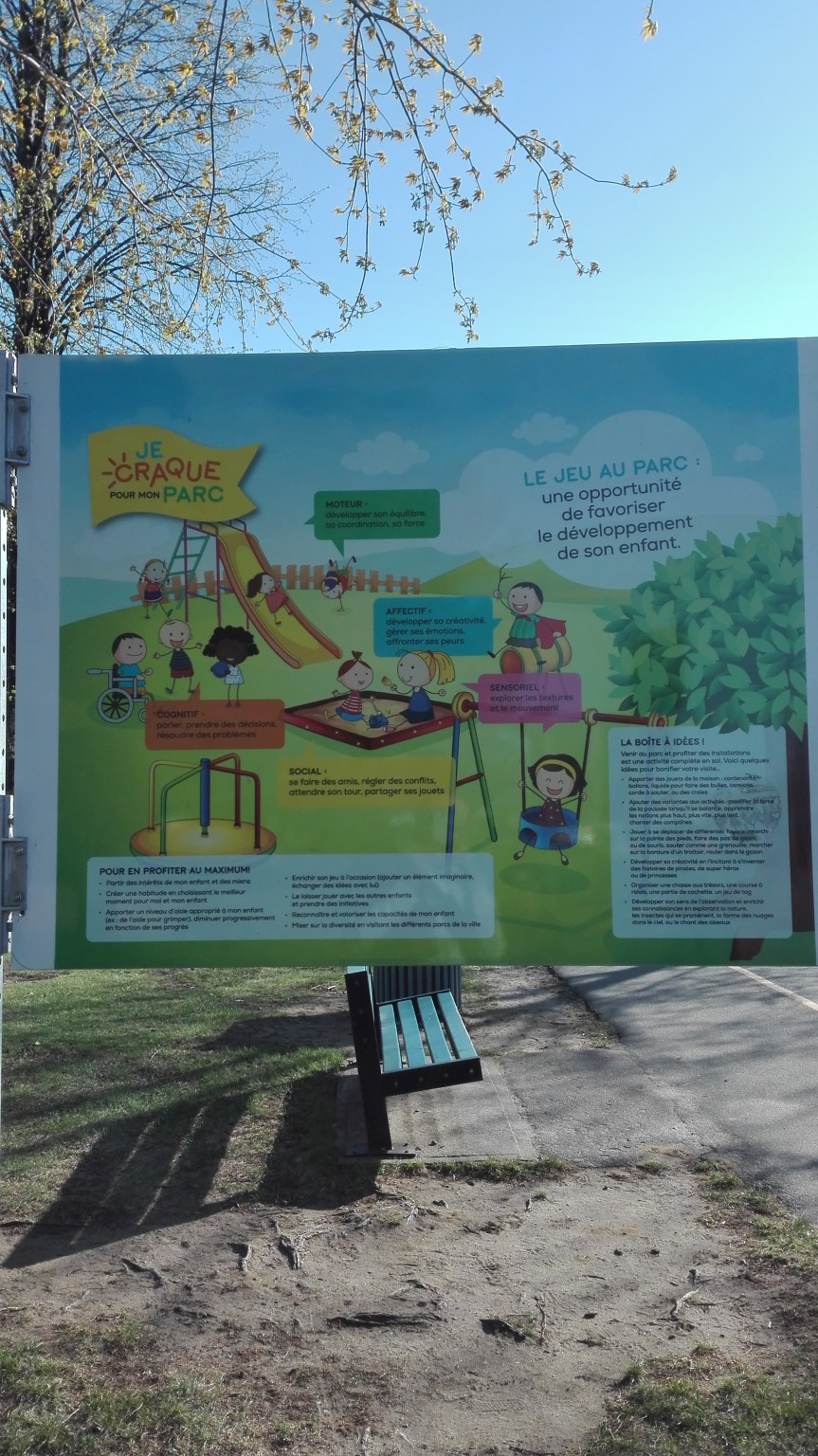 Csak hogy valamit mutassak is, a Facebook posztban említett táblát lefotóztam. Nem a gyerekeknek szól, hogy hogyan nem szabad a felnőttek szerint létezni egy kis, körbezárt területen, hanem egy egyáltalán nem körbezárt játszótéren elmeséli a felnőtteknek miért is fontos a játszótéri játék, mit tanulnak a gyerekek és hogyan fejlődnek, miközben másznak, kiabálnak, futkároznak. Sőt, bár nincs a fotón, de van két mobil WC is. Más játszótereken előfordul rendes, vízöblítéses, mosdós Wc is, padok a családnak, hogy piknikezni is lehessen kényelmesen. Nem tökéletes, az év hat hónapjában megközelíthetetlenek, és mivel amúgy is minden építmény fémből van, meg sem lehet őket fogni -10 fokban. De mikor vannak, akkor sok futkározó, sikítozó gyerek örül nekik nagyon, miközben a szülők békésen pihennek a padokon.