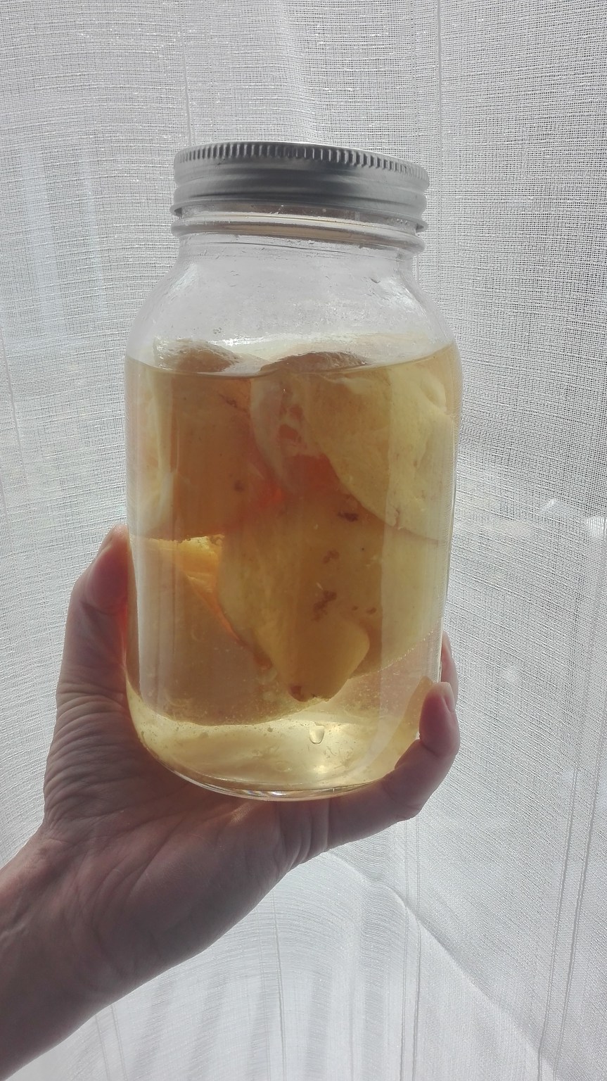 Fogom a limonádé vagy citromossüti vagy reggeli citromos víz után maradt citromhéjakat, és ahogy vannak beletömködöm őket egy befőttes üvegbe, majd felöntöm őket az ecettel. Beteszem a lezárt üveget a mosogató alatti polcomra, és egy hétre el is felejtem.