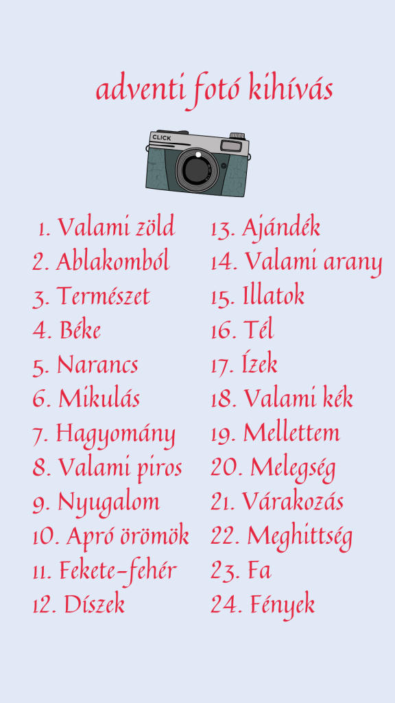 Idén nem sütikihívás lesz adventkor (bár lesz sütés és receptek bőven, ha minden jól megy), hanem fotó kihívás.
