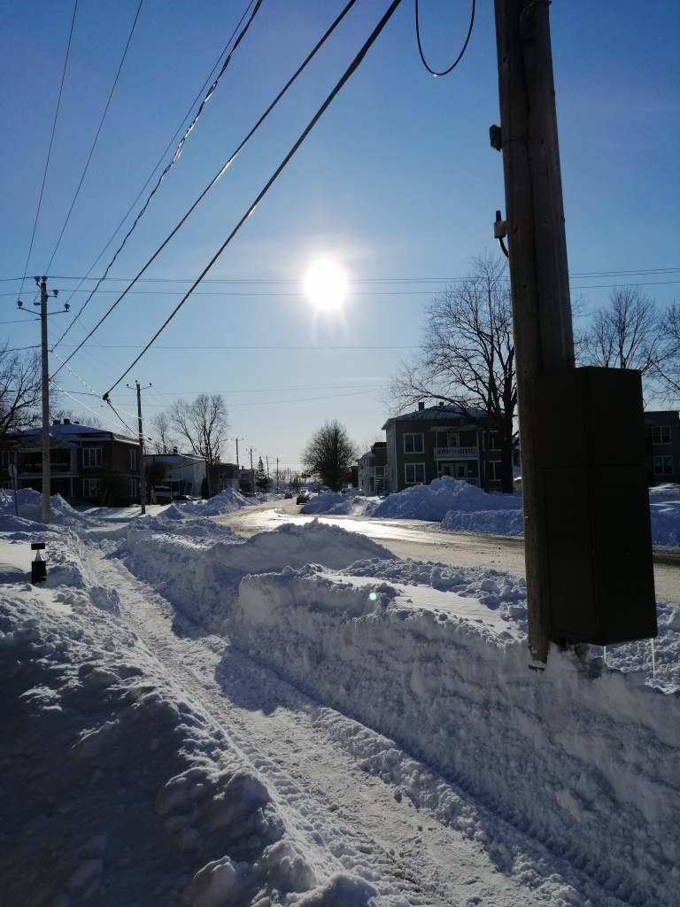 A két napos hóvihar után csodálatos, de nagyon hideg vasárnap jött. És mivel muszáj volt már kimozdulni, hiszen egy teljes napig be voltunk zárva, aztán pedig én nem éreztem jól magam, délután muszáj volt kicsit mozogni. Addigra az össze havat is sikerült elhordani a ház körül. Ez nem kis munka – szombaton a Franc a síelés után egész délután a havat pakolta ki az útra, hogy éjjel biztosan elvigye a takarításkor a teherautó. (Ugyan a busz útvonala elkerült az utcánkról, de mivel itt az iskola és egy elég forgalmas utca, a második hullámban mindig elviszik legalább a hó egy részét, de gyakran más az elsőbe is beleesünk.)