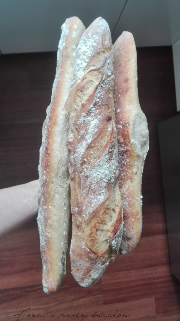 Pihentetés után megformázom a bagetteket. Rengeteg forma van erre, ki mit szeret. Ez a videó nagyon profi. Nyilván senki nem várja el tőletek vagy tőlem, hogy ilyen profin űzze az ipart, de érdemes lassanként ellesni a mozdulatokat. Aztán lesz ami lesz. 🙂