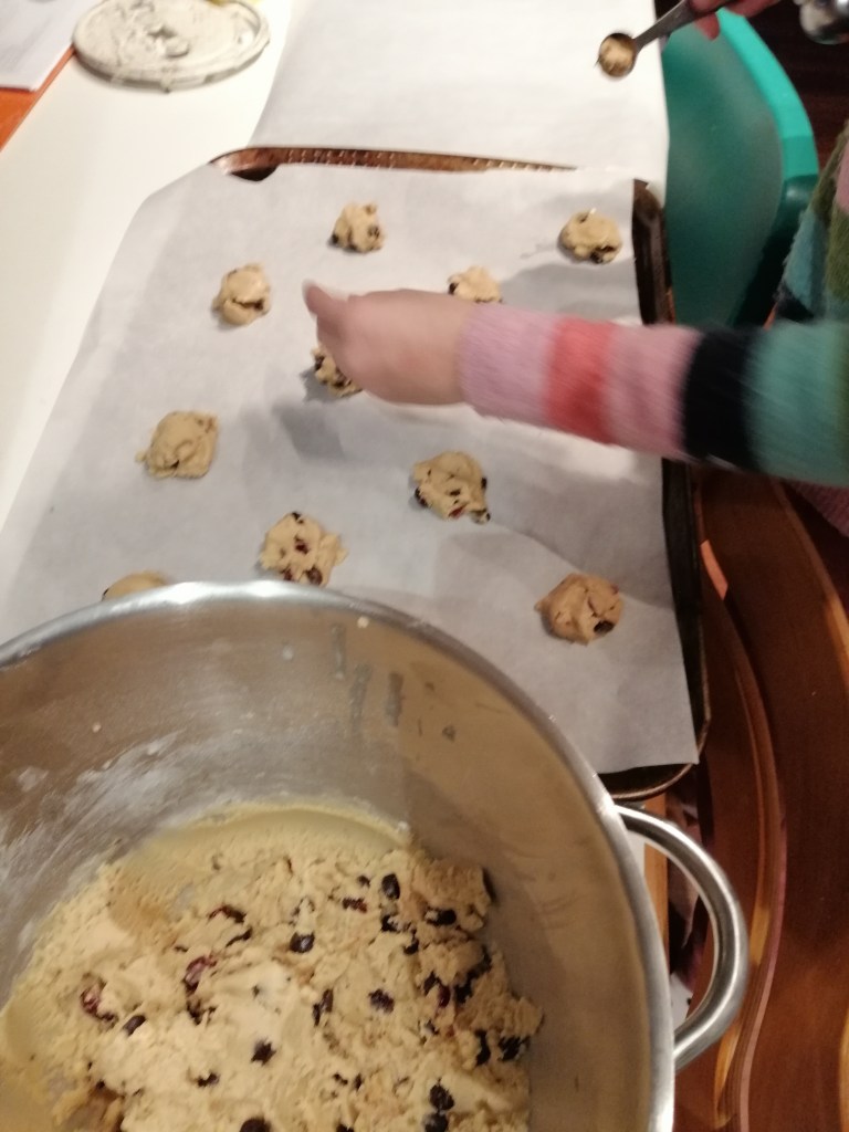 - Egy evőkanálnyi halmokat kanalazok a sütőpapírral kibélelt tepsikre, úgy, hogy legalább 5 centi távolságra legyenek egymástól a csomagok. Minden nagyobb halom tetejére egy mogyorónyi kisebb halmot pakolok, és nagyon enyhén lenyomom őket (nem lapítom el őket teljesen, csak épp hogy összenyomom a két adag tésztát).