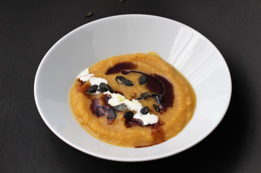 - Tejszínnel vagy növényi tejszínnel, Maggival vagy tökmagolajjal és pirított tökmagokkal tálalom.
