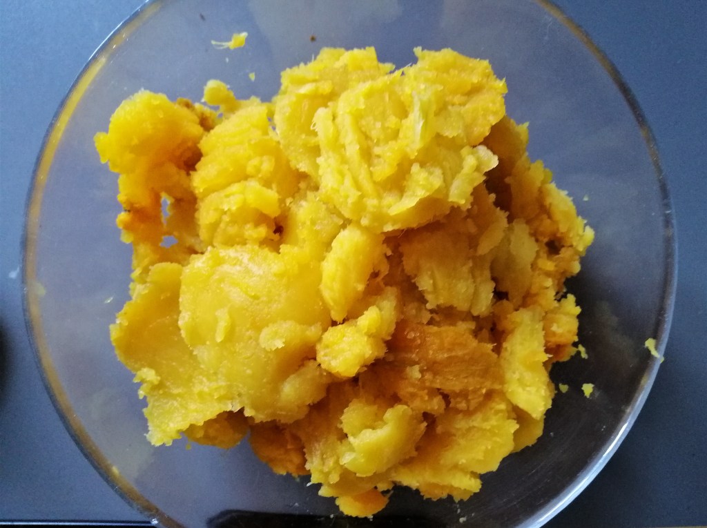 - Ha a sütőtököt külön készítem, vagy elsőre elkészítem, akkor megsütőm héjában a sütőben, majd kikanalazom a belsejét.