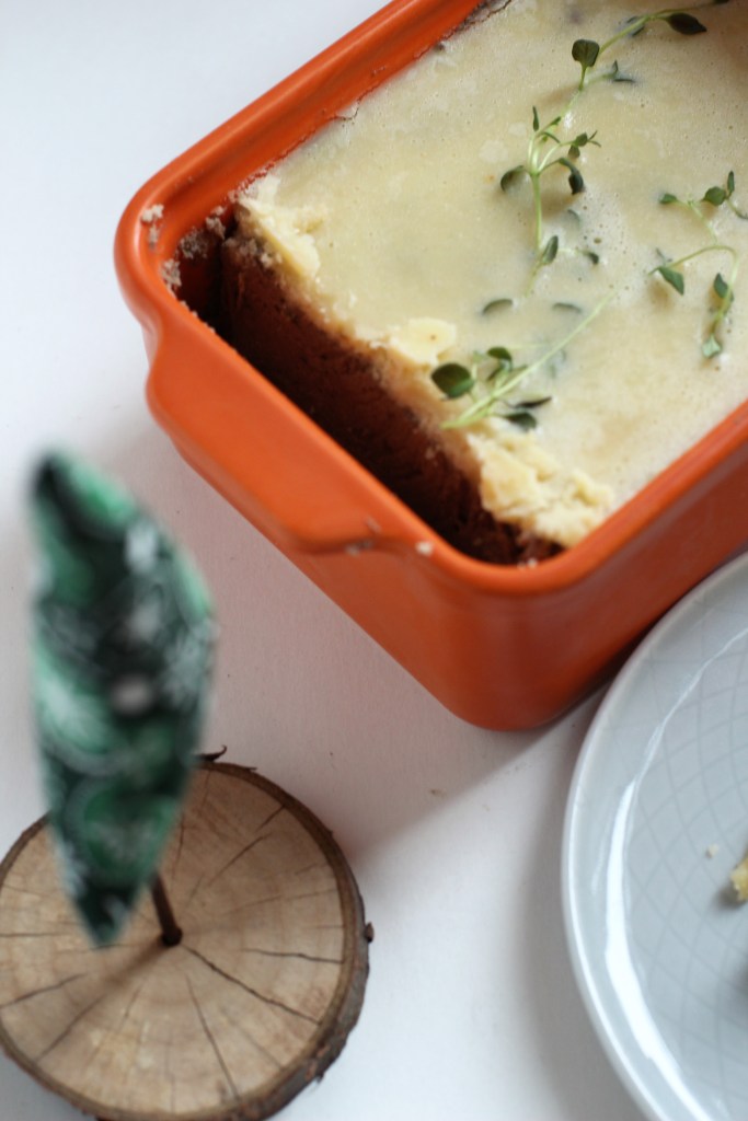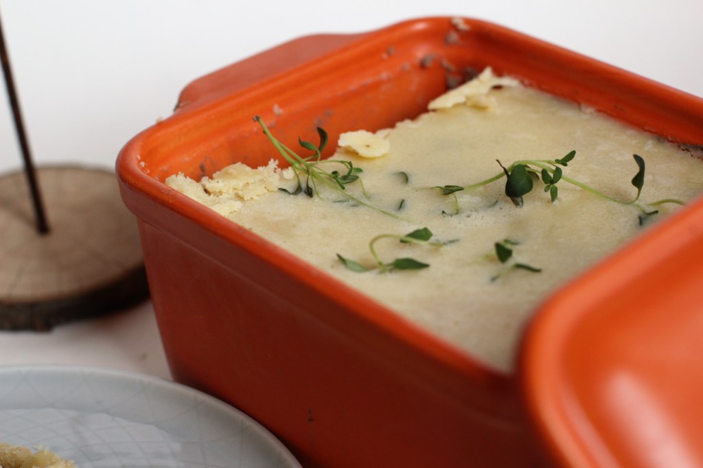 - Egy serpenyőben felolvasztom a vajat, ráöntöm a pástétom tetejére, és a kakukkfűágakkal díszítem.