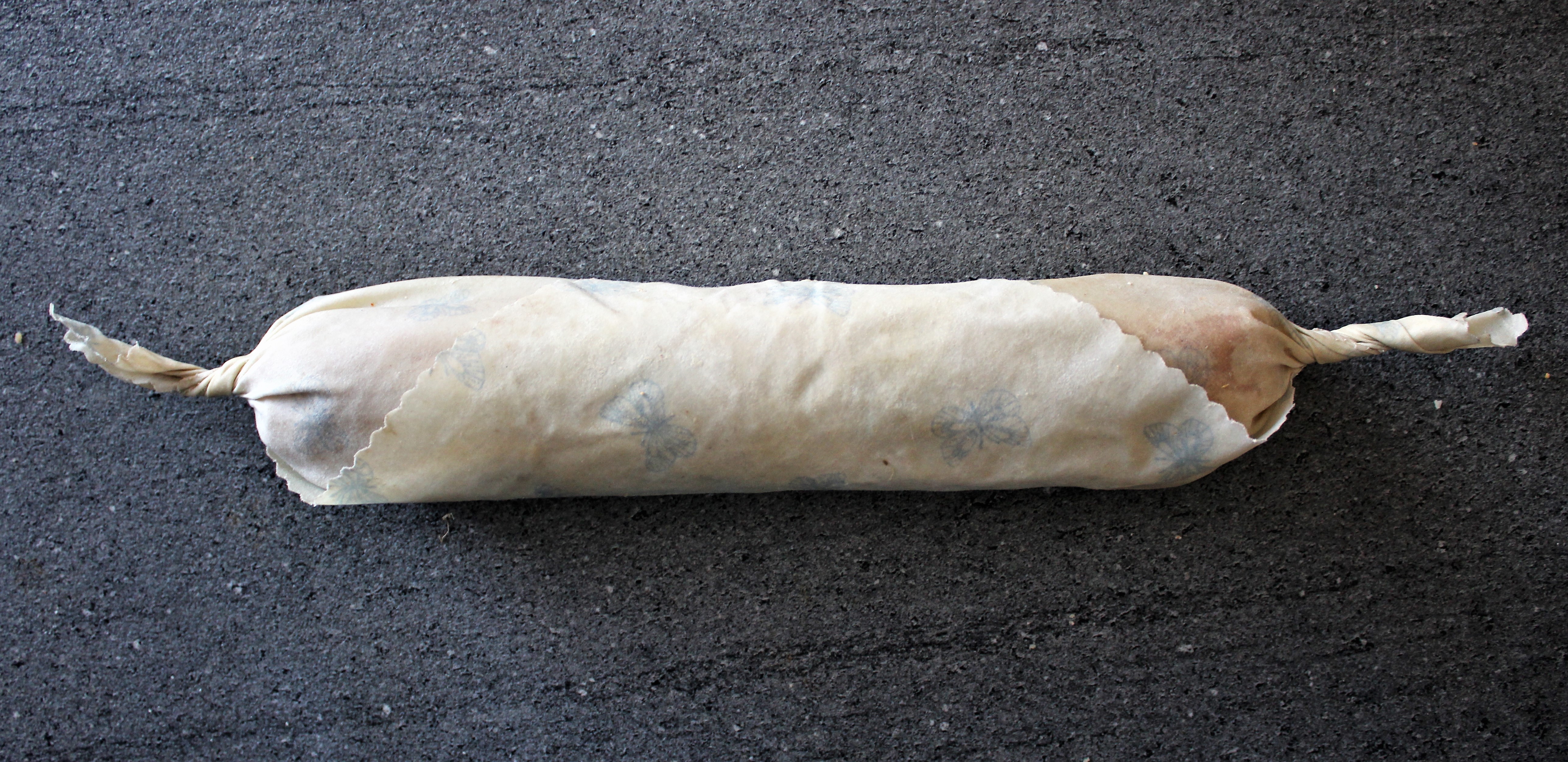 - A cipóból egy vagy két hurkát sodrok. Méhviaszos kendőbe vagy folpakkba csavarom. A kendő két végét ellenkező irányba csavarva és kicsit sodorva a becsomagolt hurkákat nagyjából egyenletes lesz a tészta. Beteszem a hűtőbe legalább két órára.