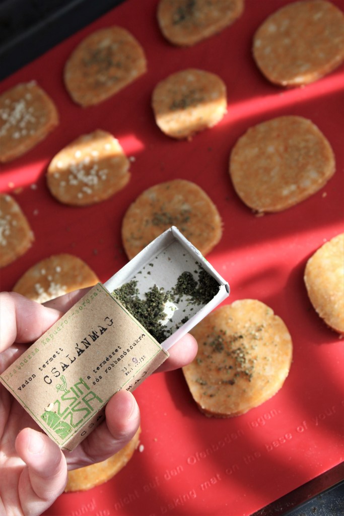 Az én kekszeimre most szórtam a csalánmagokból, amiket Sáritól, a Dzsindzsa tulajdonosától kaptam. Érdemes elnézni Sári oldalára. Saját kezűleg gyűjtött növényekből készít különlegességeket. Nagyon érdekes volt így, néha olyan érzésem volt, hogy megcsiklandozza a szájpadlásomat, és kellemesen roppant olykor a fogunk alatt. Legközelebb salátában és smoothie-ban fogom tesztelni. 🙂
