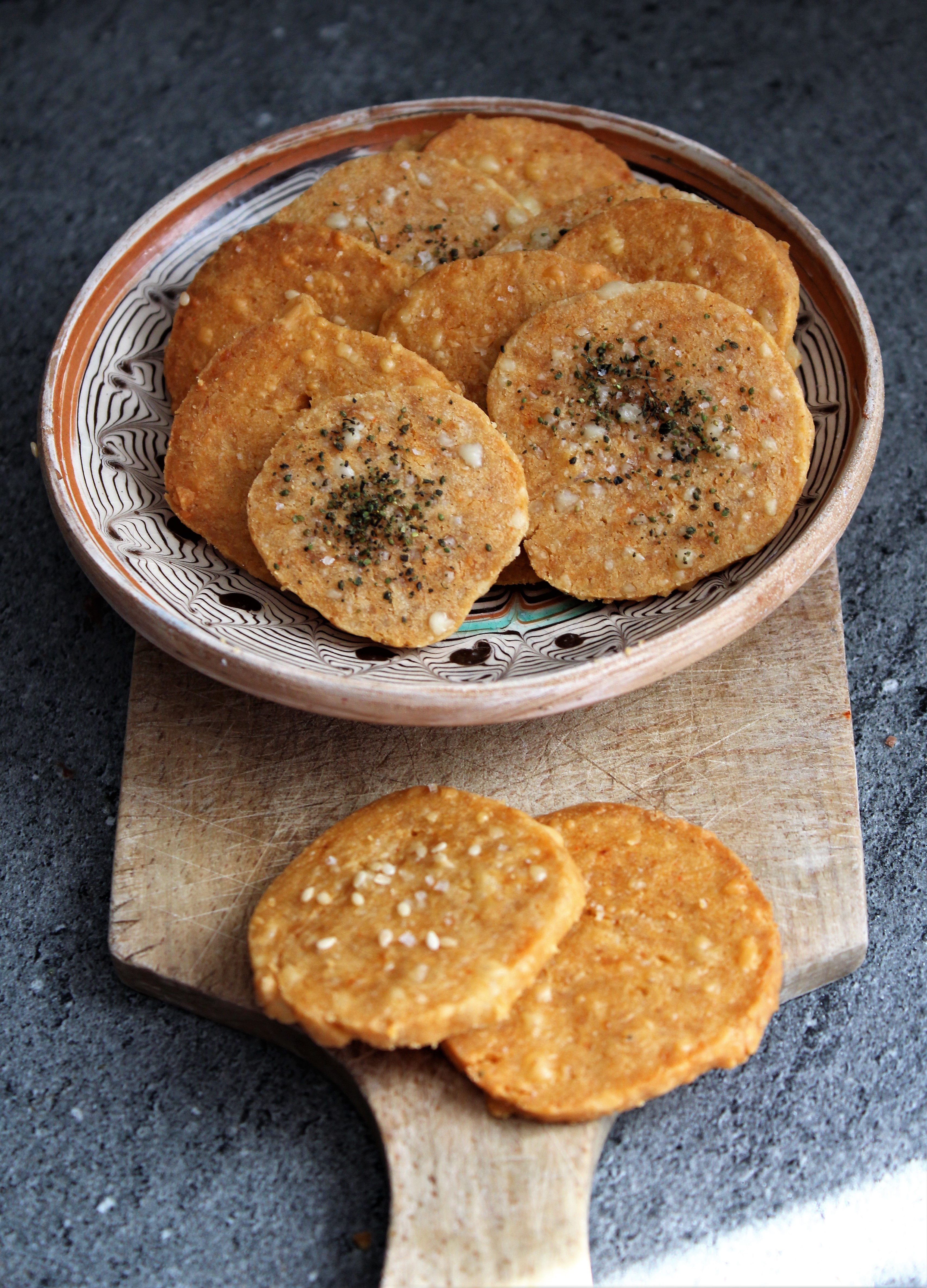Kezdjük mindjárt egy sóssal. Mert bár továbbra is nagyon szeretek sütni, de még mindig határozottan a sós ízek a nagy kedvenceim. Ez a mostani keksz egyrészt nagyon sajtos, másrészt elég könnyű. Még kiszóróformára vagy sodrófára sincsen szükség. Sőt, az összetevők listája sem hosszú, mindössze hat alapanyagra van szükségünk ehhez a krékerhez, egy méhviaszos kendőre vagy folpakkra, egy deszkára, késre, meg persze egy sütőlapra és sütőre.